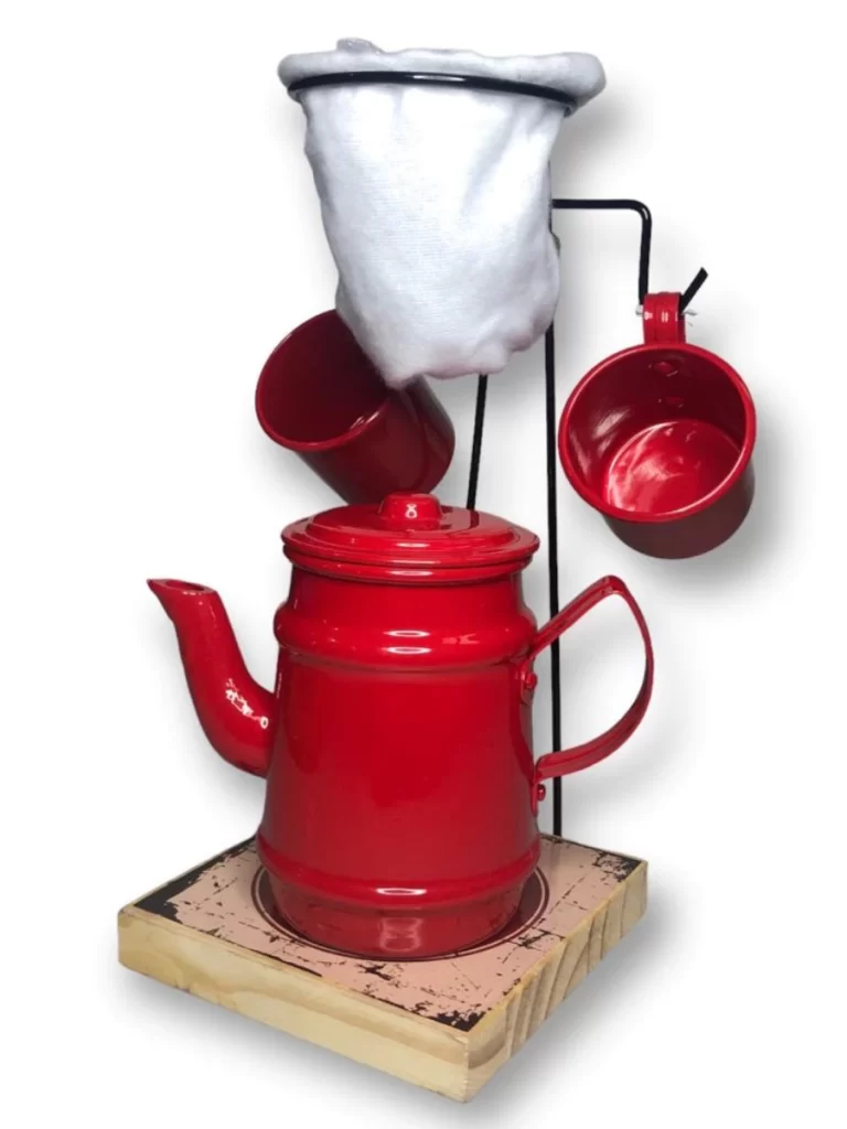 - ☕ Kit Bule + 2 Xícaras Esmaltado Vermelho (Shopee)